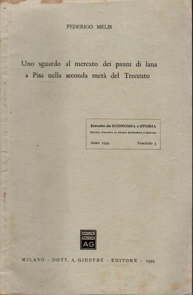 "Uno sguardo al mercato dei panni di lana a Pisa nella seconda met‡ del Trecento", edizione 1959, formato 15 x 23