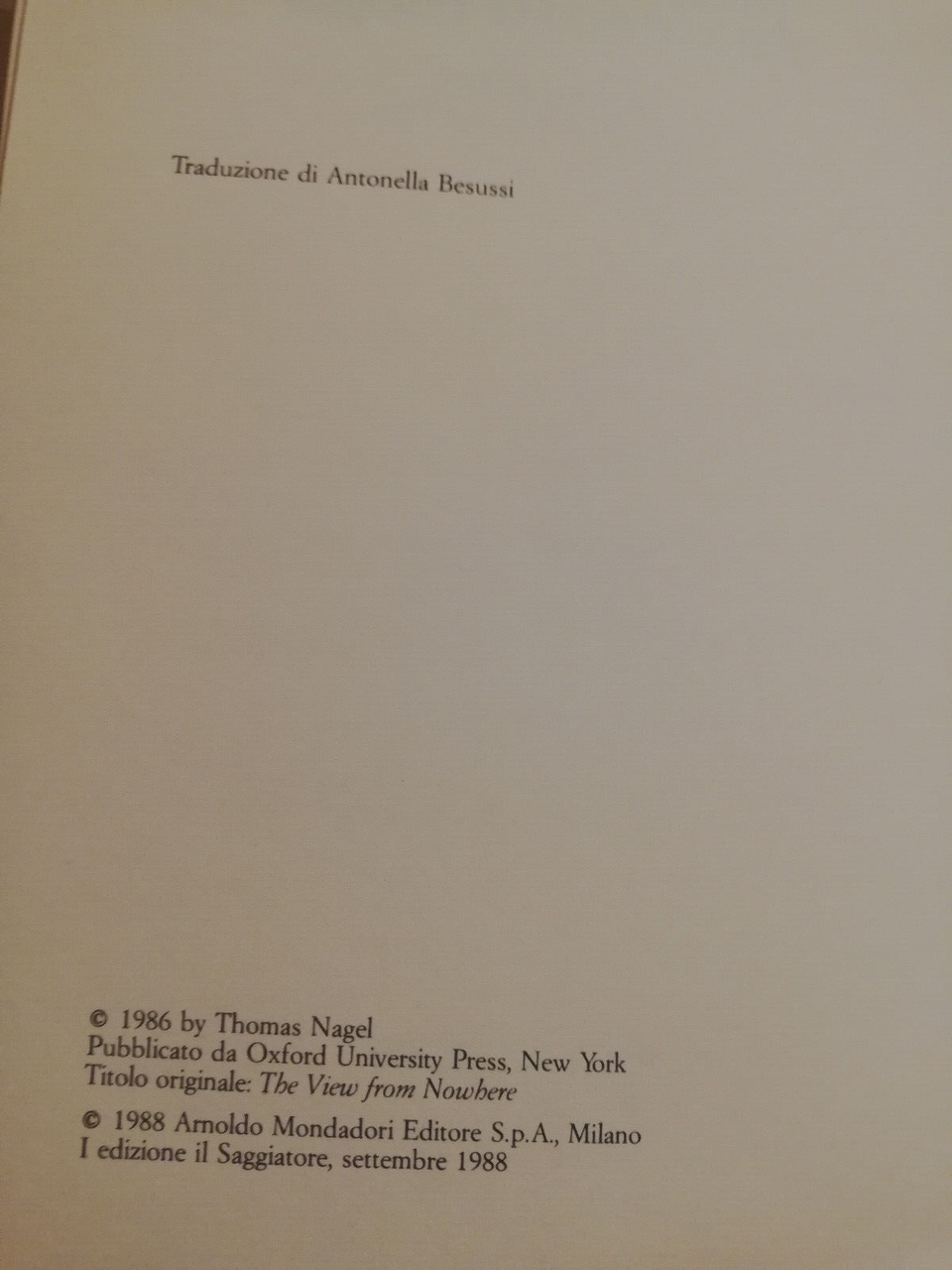 Uno sguardo da nessun luogo, Thomas Nagel, 1988, Il saggiatore