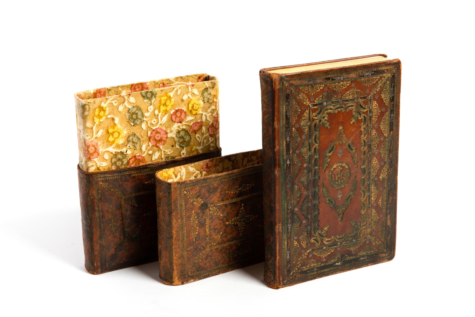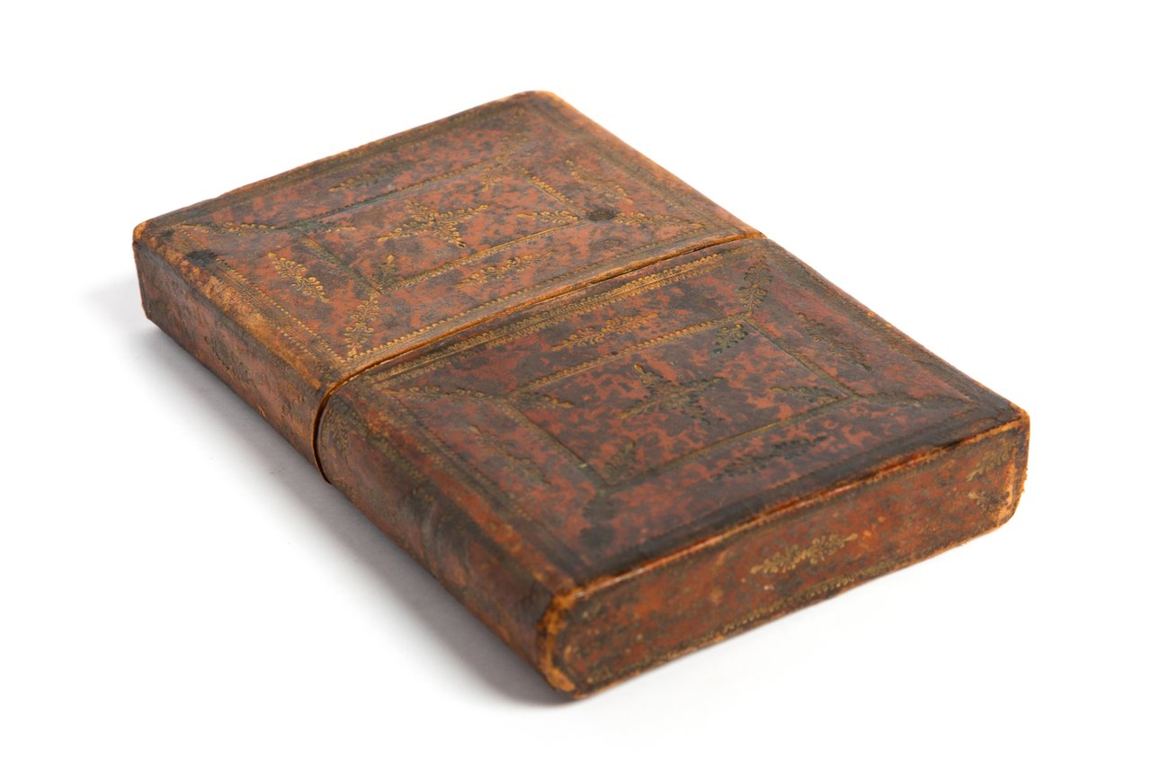 In-8°, mm 180x120, pp. (24), 397, (5). Legatura in pelle coeva con decorazioni a secco e in oro. Piatti inquadrati da doppia cornice rettangolare, la più esterna ornata da una doppia fila di arabeschi lungo i lati, la più interna con motivo geometrico e stemma gesuita al centro; al piatto posteriore monogramma coronato al centro del piatto contornato dallo stesso motivo ornamentale. Contro-piatti acquarellati in stile Remondini. Legatura conservata in astuccio coevo di piena pelle, decorato in oro con rivestimento interno in carta acquarellata a motivi floreali. Piccolo alone al margine esterno del piatto posteriore, peraltro eccellente conservazione. Affascinante oggetto d'artigianato fine settecentesco che racchiude un non comune manuale ad uso dei religiosi per prepararsi ai sacramenti.. *** TUTTI I NOSTRI LIBRI SONO VISIBILI PREVIO CONTATTO MAIL O TELEFONO NELLA NUOVA SEDE DI MILANO: LIBRERIA COSMOPOLIS, VIA JOMMELLI, 22. ***