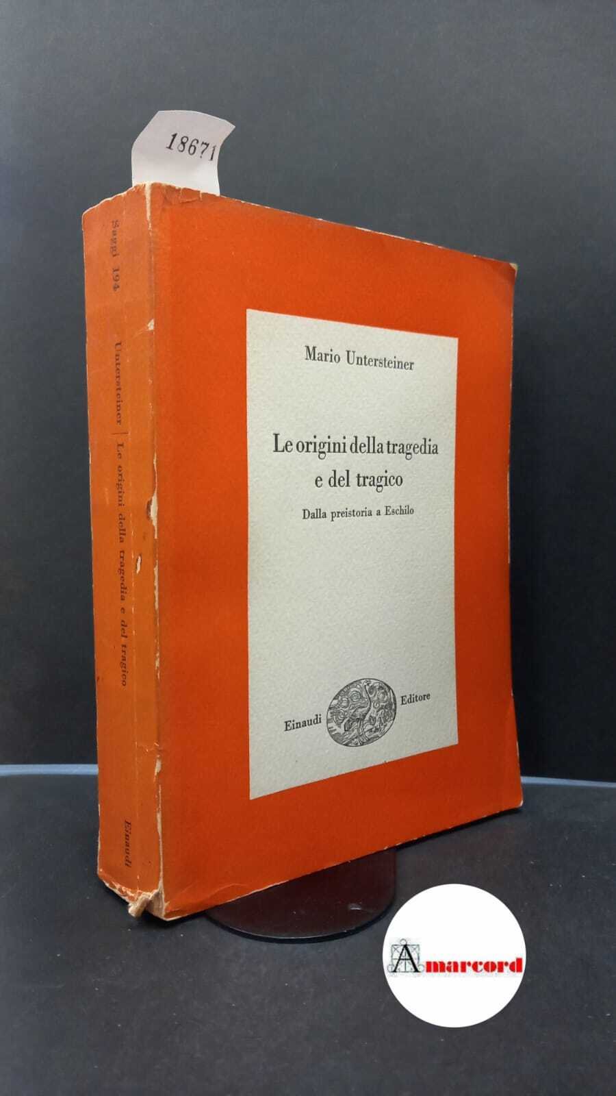 740 Untersteiner, Mario Untersteiner, Mario. �Le �origini della tragedia e del tragico : dalla preistoria a Eschilo. Torino Einaudi, 1955. , Einaudi 1955 italiano, in ottavo 627 18671
