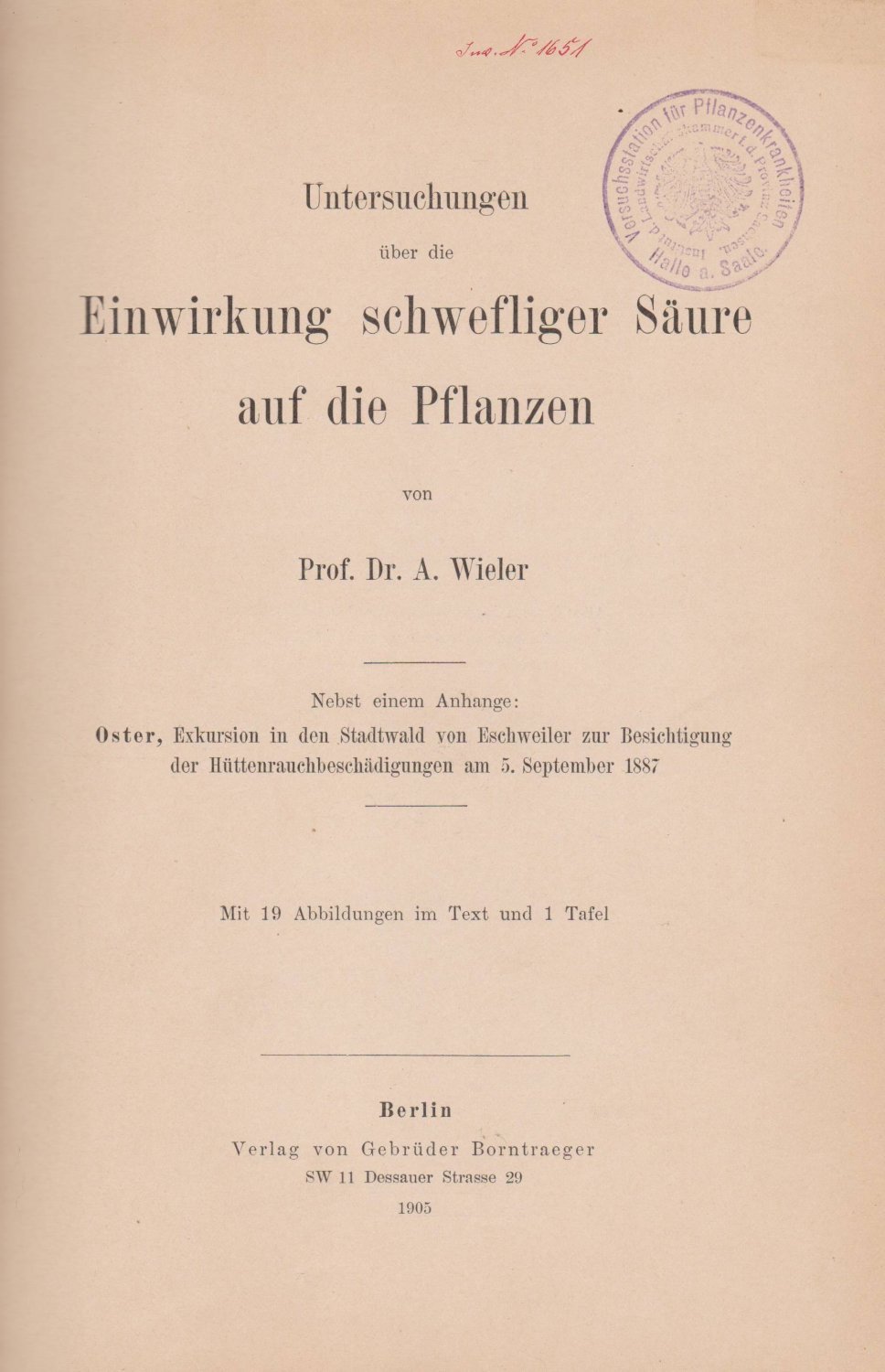 Untersuchungen über die Einwirkungen schwefliger Säure auf die Pflanzen.