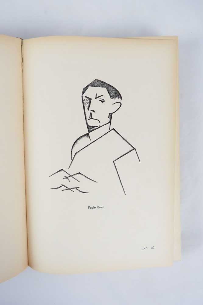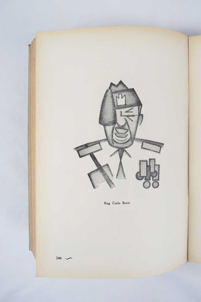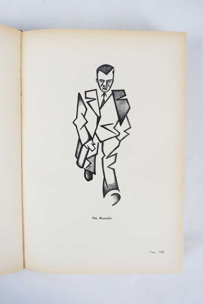 LIBROPrima edizione.Ottimo esemplare, ex libris Caproni.Edizione originale in 1000 esemplari. Raccoglie i ritratti dei personaggi ufficiali del fascismo, tutti in stile futurista. La paginazione inizia dal recto della carta incollata al contropiatto anteriore, così da avere come p. 2 la prima di risguardo e via di seguito fino all'ultima incollata al contropiatto posteriore. Cfr. Cammarota, Futurismo, 454.1.
