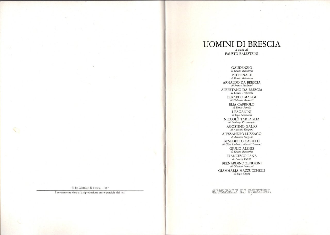 Uomini di Brescia di Balestrini Fausto inserto Giornale di Brescia