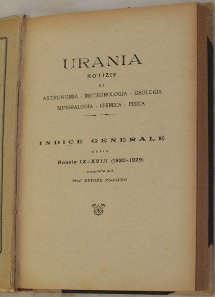 URANIA NOTIZIE DI ASTRONOMIA - METEOROLOGIA - GEOLOGIA - MINERALOGIA - CHIMICA - FISICA