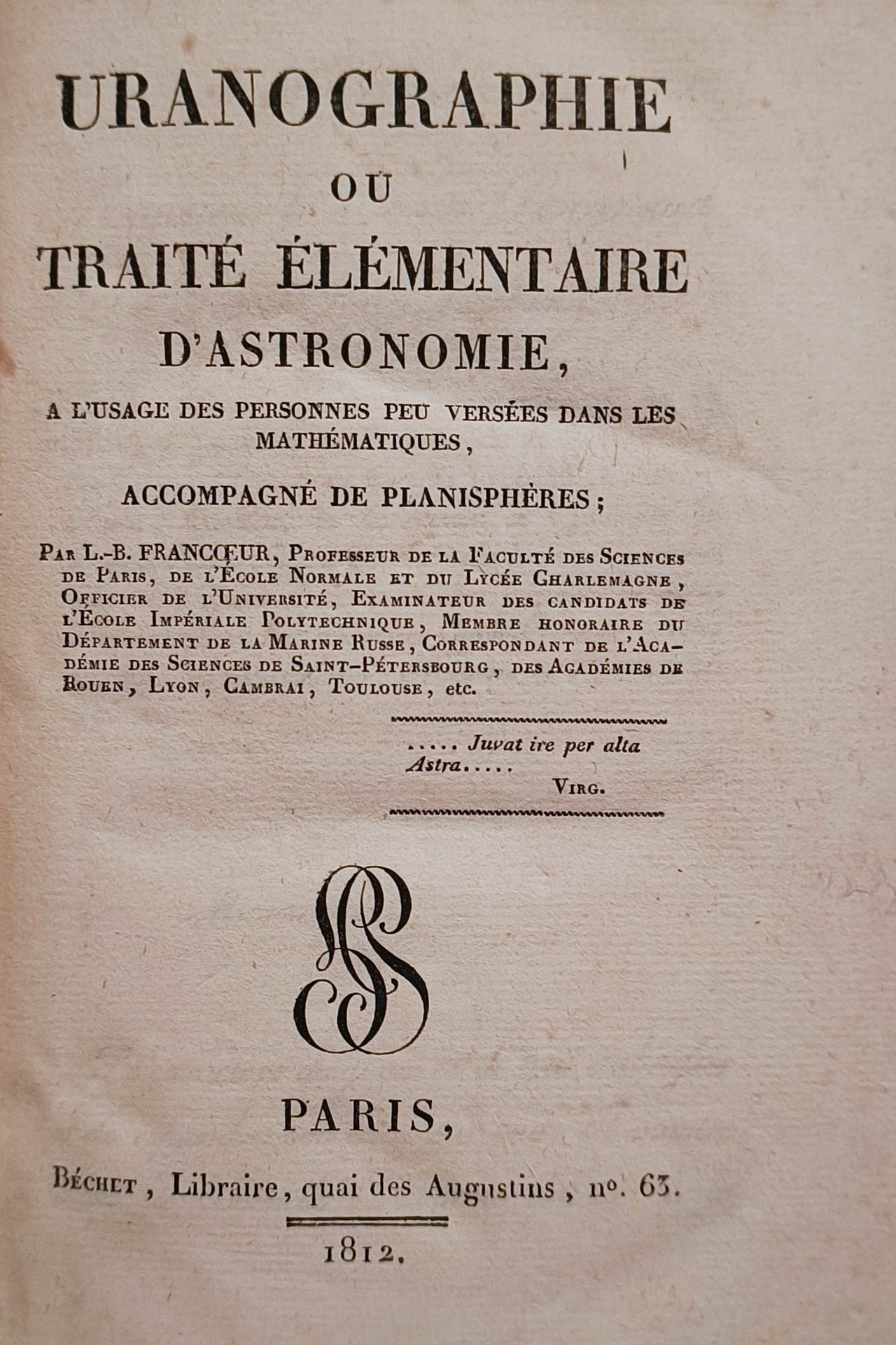 L. B. Francoeur, Uranographie, ou traité élémentaire d'astronomie, a l'usage des personnes peu versées dans les mathématiques, accompagné de planisphères.