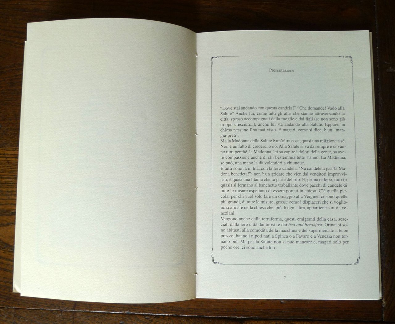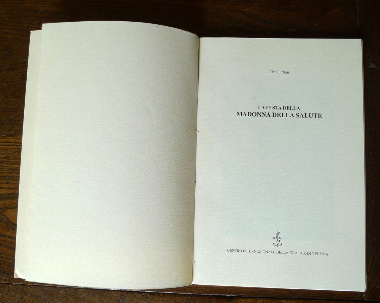 Lina Urban,LA FESTA DELLA MADONNA DELLA SALUTE.Centro Internazionale della Grafica di Venezia,Venezia 2003,tiratura di 500 esemplari,brossura con sovraccoperta, 24,5x17 cm., pp.38,illustrazioni in bianco e nero,peso: g.350cod.9474CONDIZIONI DEL LIBRO: ottime, come nuovo