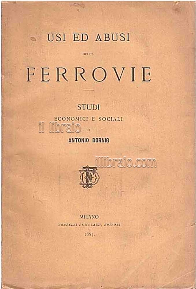 in 8°; pp. VIII, 200; br. Parte prima: Teorica delle ferrovie - Parte seconda: Cenni storici e critica della ferrovia