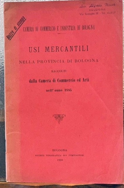 USI MERCANTILI NELLA PROVINCIA DI BOLOGNA RACCOLTI DALLA CAMERA DI COMMERCIO ED ARTI NELL'ANNO 1885.