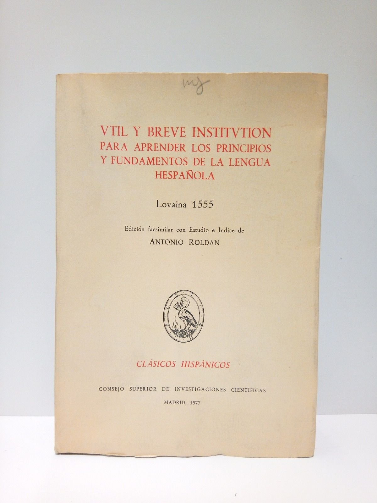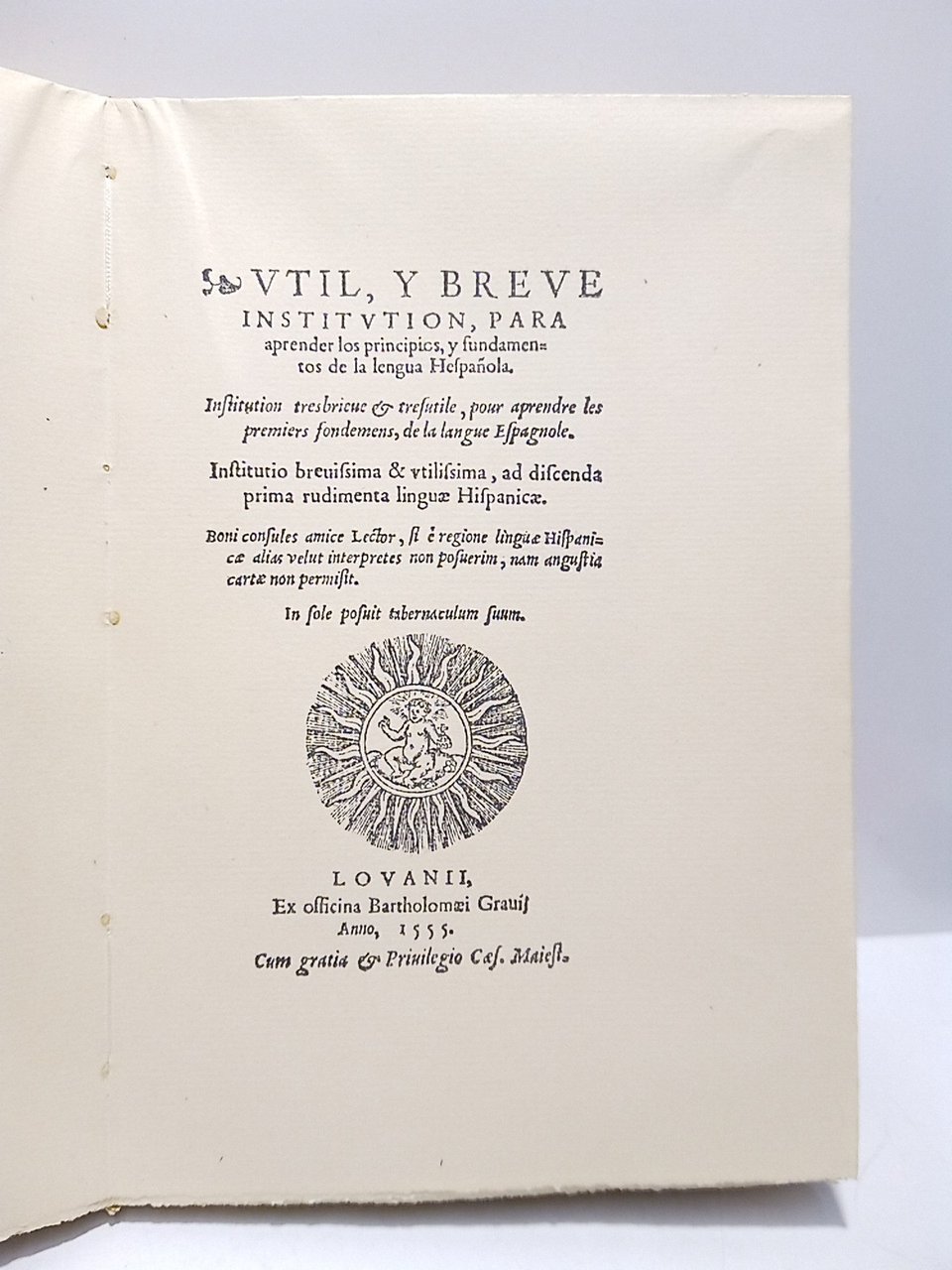 Util y breve institution para aprender los principios y fundamentos de la lengua hespañola. Lovaina 1555 / Edición facsimilar [en papel especial] con estudio e índice de ANTONIO ROLDAN