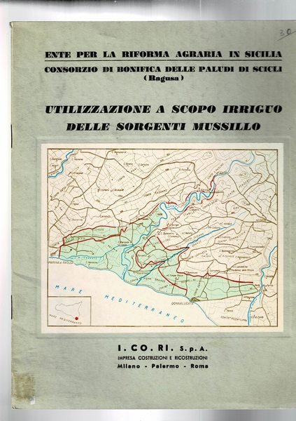 Utilizzazione a scopo irriguo delle sorgenti Mussillo, a cura del consorzio di bonifica delle paludi di Scicli.