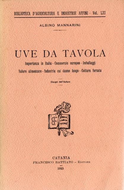 Catania, Francesco Battiato Editore, 1915. Biblioteca d'Agricoltura e Industrie Affini – Vol. LXI. In 8vo, pp. 174 (con Indice), ill. e tabelle in b/n n. t., bross. edit. in carta, contropiatti e fogli di guardia in carta azzurrina con inserti pubblicitari relativi alle pubblicazioni della “Biblioteca d'Agricoltura e Industrie Affini” e della “Biblioteca dell'Allevatore” dell'Editore Battiato in Catania. Buona conservazione, fogli ancora chiusi.