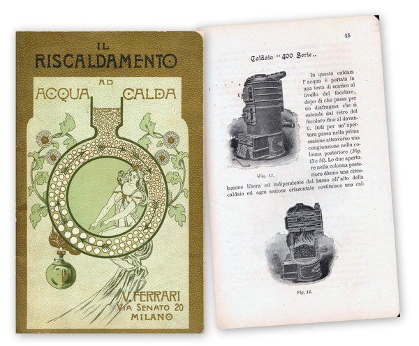 In 16°, br. edit. ill., pp. 53,(3), con numerose ill. b.n. n.t. di caldaie, radiatori etc.; ottimo es.