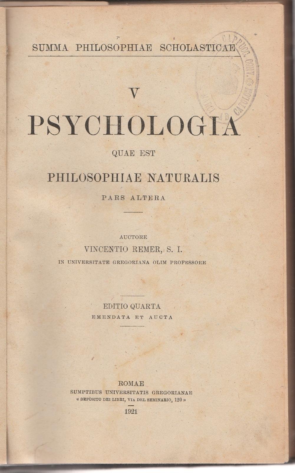 V. Remer Psychologia Quae Est Philosophiae Naturalis 4∞ Ed. 1921 L5715