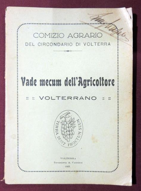 Tipografia A. Carnieri, Volterra, 1923. In 12esimo, pp. 42 + 21 non numerate con il calendario agricolo delle operazioni diviso nei mesi dell'anno, alcune illustrazioni (anche ai contropiatti), bross.orig.in carta verdina. Buono stato. .