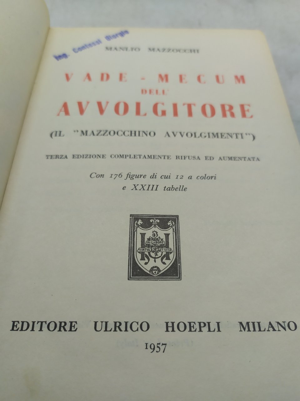 vade mecum dell'avvolgitore hoepli . , hulrico hoepli italiano, pp.260 ^^brossura