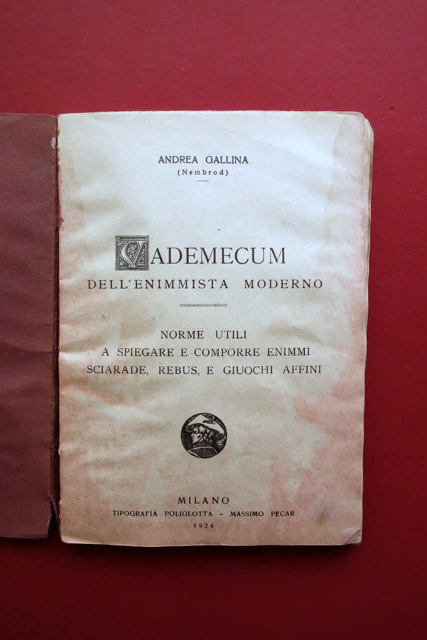 Vademecum dell'Enimmista Moderno Rebus Giochi Andrea Gallina Pecar Milano 1924