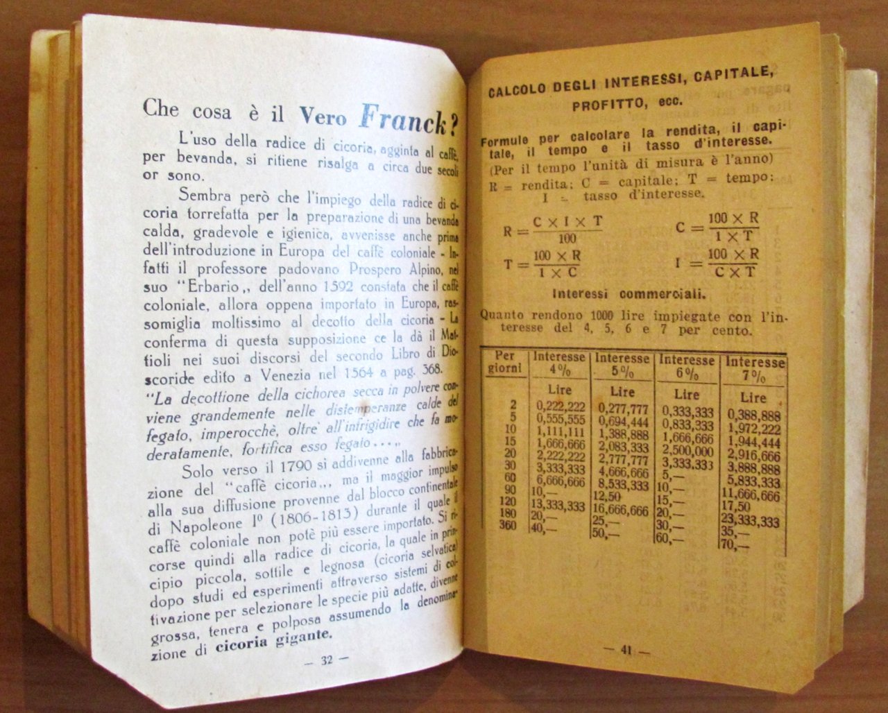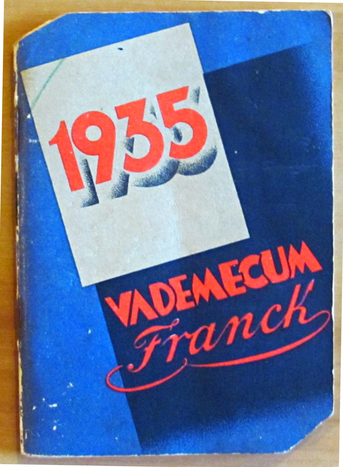 Vademecum Pubblicitario Franck. Milano, 1935. Piccolissimi e lievissimi segni a matita a qualche pagina. 8x11,5; pp.56. RARO e in OTTIMO STATO , Molto buono (Very Good)