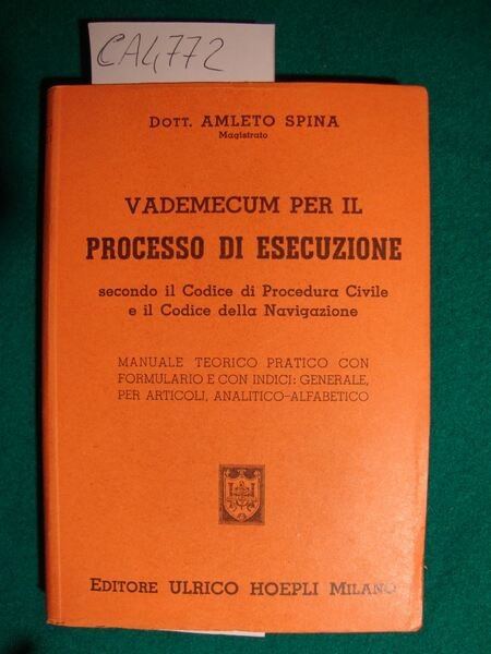 (Collana : Manuali Hoepli) Manuale teorico pratico con formulario e con indici: generale, per articoli, analitico-alfabetico - DETTAGLIO DELLE CONDIZIONI : Minute macchie alle pagine di guardia - (44d).