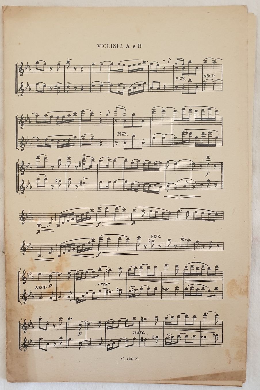 Partitura per orchestra degli anni '30 della melodia "Vagamente." di A. Gori. Copertina assente. GENERE: Intermezzo STRUMENTI: violino I e II, I B; tromba, trombone, oboe, batteria, clarinetto ANNO: anni '30 DIMENSIONI: In 8. cm 27,5x17,5 PAGINE: pp. 13 CONDIZIONI: Buone condizioni. Score for orchestra of 1930's of the melody "Vagamente" by A. Gori. Cover lacks. MUSIC: Intermezzo STRUMENTI: violin I and II, I B; tromba, trombone, oboe, drums, clarinet<BR>YEAR: 1930's SIZE: In 8. cm 27,5x17,5 PAGES: pp. 13 CONDITIONS: Good conditions. Ex libris in the cover