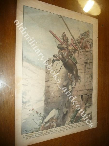 DESCRIZIONE: Domenica del Corriere, Milano, Anno XXXVI n. 4 (28 gennaio 1934). COPERTINA: Sciatore viene attaccato da una volpe nell'Alta Val Formazza Domodossola. RETRO: Un parapetto salva un carro con persona a bordo a Borgosesia. La Domenica del Corriere è stato un popolare settimanale italiano fondato a Milano nel 1899 e chiuso nel 1989. Apparve per la prima volta nelle edicole l'8 gennaio 1899 come supplemento illustrato del Corriere della Sera. Stampata in grande formato (sul modello del domenicale La Tribuna illustrata), aveva 12 pagine e veniva distribuita gratis agli abbonati del Corriere, oppure si poteva acquistare in edicola per 10 centesimi. La prima e ultima di copertina erano sempre disegnate. Il Corriere si avvaleva di un giovane disegnatore, Achille Beltrame, allora sconosciuto, a cui veniva affidato in ogni numero il compito di rendere con la sua tavola il fatto più interessante della settimana. Dopo la sua morte nel 1945, fu sostituito da Walter Molino che, come il suo predecessore, firmò memorabili copertine. A differenza dei settimanali dell'epoca, la Domenica del Corriere diede ampio spazio alle fotografie e ai disegni, e questo fu uno dei motivi del suo successo. CONDIZIONI: Accettabili senza azzurrina. PESO / WEIGHT: 200 gr. without package