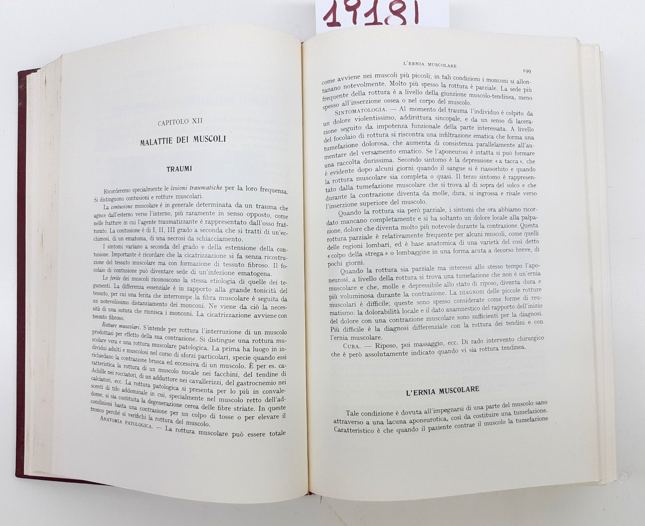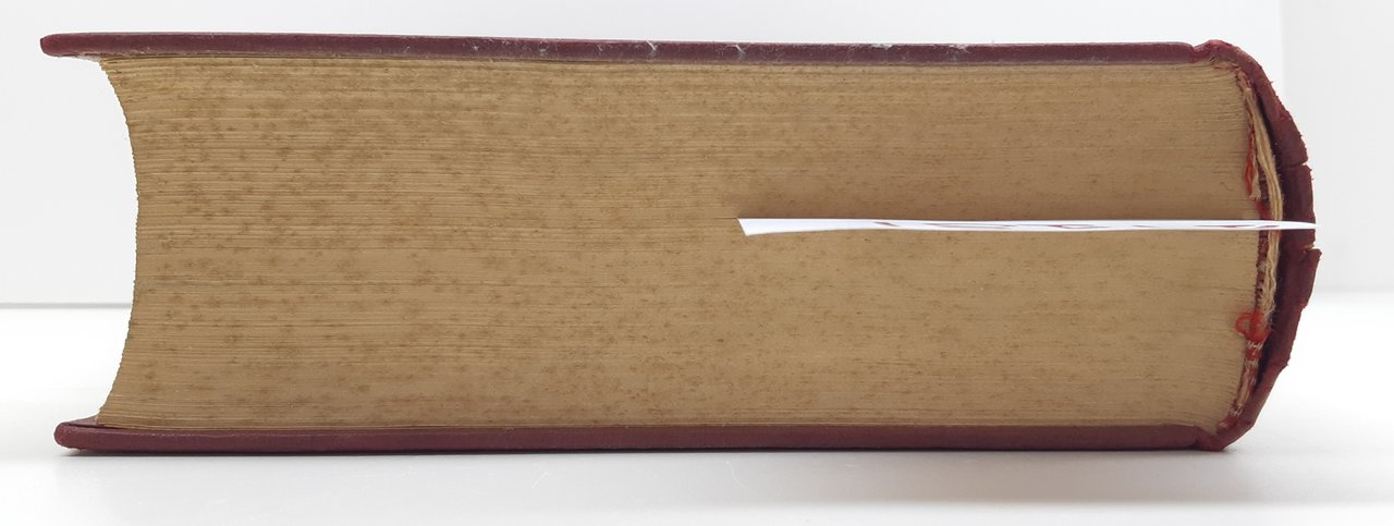 Legatura rigida in tela rossa con titoli in oro al piatto anteriore e al dorso, in discreto stato, lievi segni di usura, dorso scolorito con piccoli strappi al margine superiore, cuffia sfilacciata, tagli leggermente ingialliti con fioriture prima ed ultima pagina bianca con piccole fioriture, una rottura alla legatura all'antiporta, interno in buono stato, su carta patinata, numero pagine 1255 dimensioni cm 24 * 17,5 * 5,5