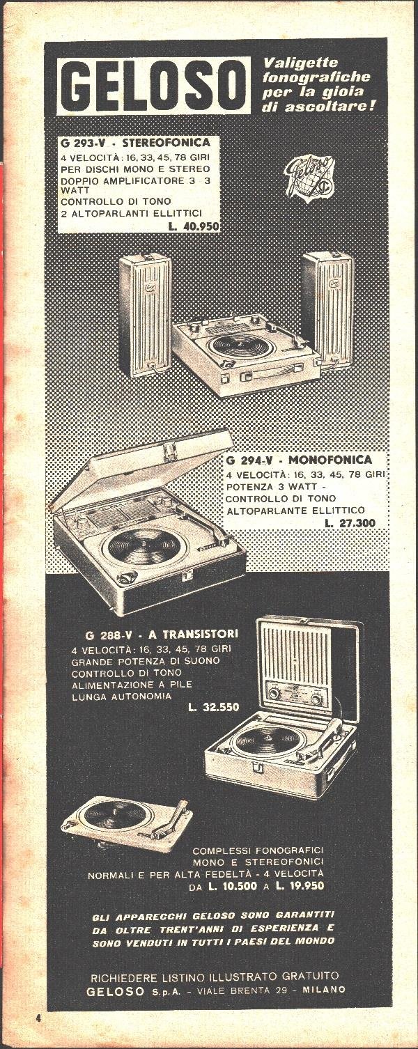 Valigette fonografiche Geloso. Pubblicità 1963