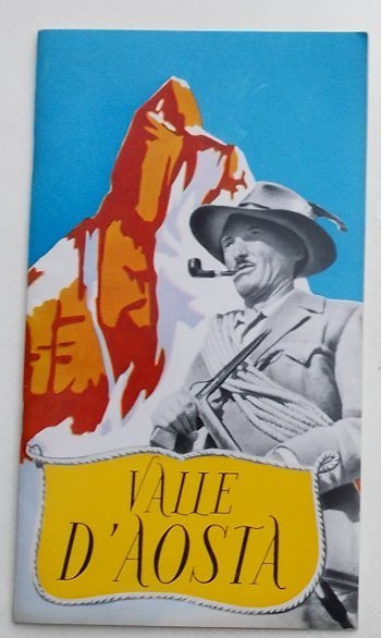 In 8° (cm. 21 x 12); pagg. 28; con numer. illustraz. fotograf. anche a colori; in busta all'interno della prima copertina fascicolo di 24 pagine di Giulio Brocherel "Descrizione della Valle d'Aosta"; applicata all'interno della seconda copertina cartina turistica della Valle d'Aosta con al verso illustraz. a colori dei costumi di Ayas e Courmayeur; leggera carton. origin. figur. a colori. VG. ** Ottimo esemplare.