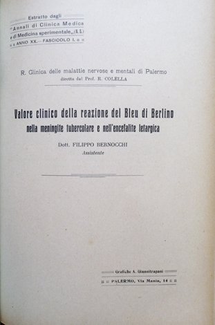 Valore clinico della reazione del Bleu di Berlino nella meningite tubercolare e nell'encefalite letargica.