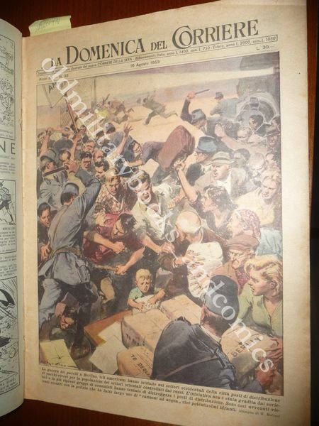 DESCRIZIONE: LA DOMENICA DEL CORRIERE 16 agosto 1953 n. 33 In copertina: Guerra dei pacchi viveri a Berlino. Al retro: Le corde per il Cervino. Il parroco di Valtounanche benedice le corde. All'interno: Servizio su Marilyn Monroe CONDIZIONI DELL'OGGETTO: Buone, con sovracc. azzurrina, con piccole pieghe. PESO/WEIGHT: 88 g without package