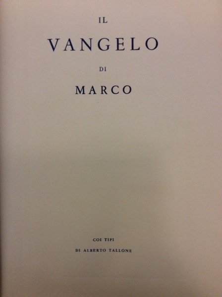In-4 p., 4 volumi, elegante legatura in mz. pelle con ang., dorso a cordoni con filetti e titolo oro, taglio sup. dorato, conserv. copertine orig., pp. (4),XXII,(2),122,(6); XIV,(2),79,(11); XIV,(2),132,(6); XVI,(2),100,(12); ogni volume con 1 bella tavola in tinta fuori testo, da disegni di B. Passeri, tratta dall'opera cinquecentesca del gesuita spagnolo Jerònimo Nadal.Nuova traduzione dal testo critico greco stabilito da A. Merk ('Novum Testamentum graece et latine', Romae 1957). Introduzione generale, introduzioni particolari per ciascuno dei 4 volumi, e note di Claudio Zedda, professore di Sacra Scrittura nella Pontificia niversità Lateranense. Cfr. Pellizzari L'opera tipografica di Alberto Tallone, n. CIX, p. 157. Edizione di 700 esemplari. Il ns. appartiene alla tiratira di 640, su carta delle cartiere Miliani di Fabriano, non numer. In ottimo stato.