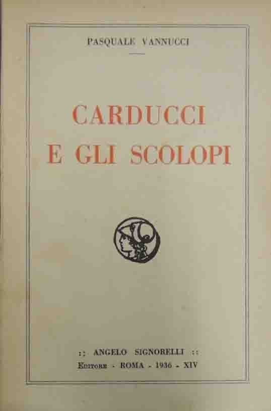 Pasquale Vannucci, Carducci e gli scolopi, Angelo Signorelli Editore, Roma 1936, pp. 108, 11 c. di tavv. f.t. ill. b.n., cm 20, br. ed. Firma d’appartenenza e data alla prima di copertina e alla prima pagina di guardia. Minime bruniture, lievissime tracce d’uso, per il resto ben conservato.