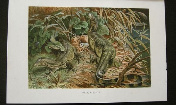 Varano fasciato. Tratto da "La vita degli animali" di A.E. Brehm. Seconda edizione sulla terza tedesca a cura del Prof. M. Lessona.