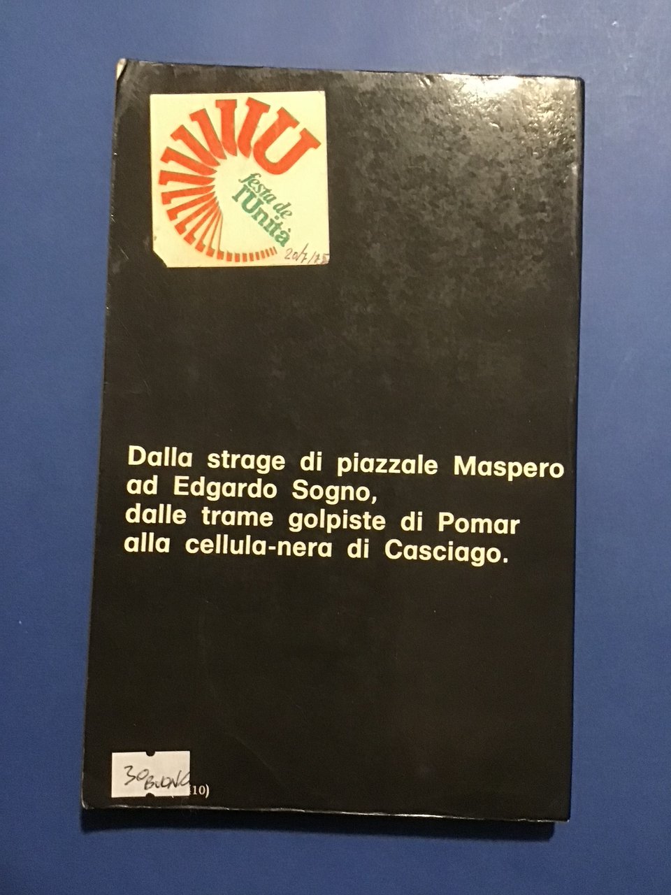 Adesivo sul retro (vedere foto) e titolo colorato a pennarello rosso