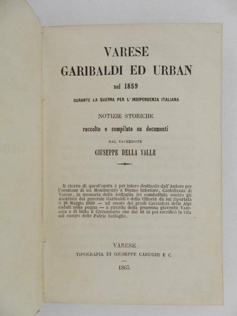 Varese, Garibaldi ed Urban nel 1859 durante la guerra per l'indipendenza italiana. Notizie storiche raccolte e compilate su documenti del sacerdote Giuseppe Della Valle