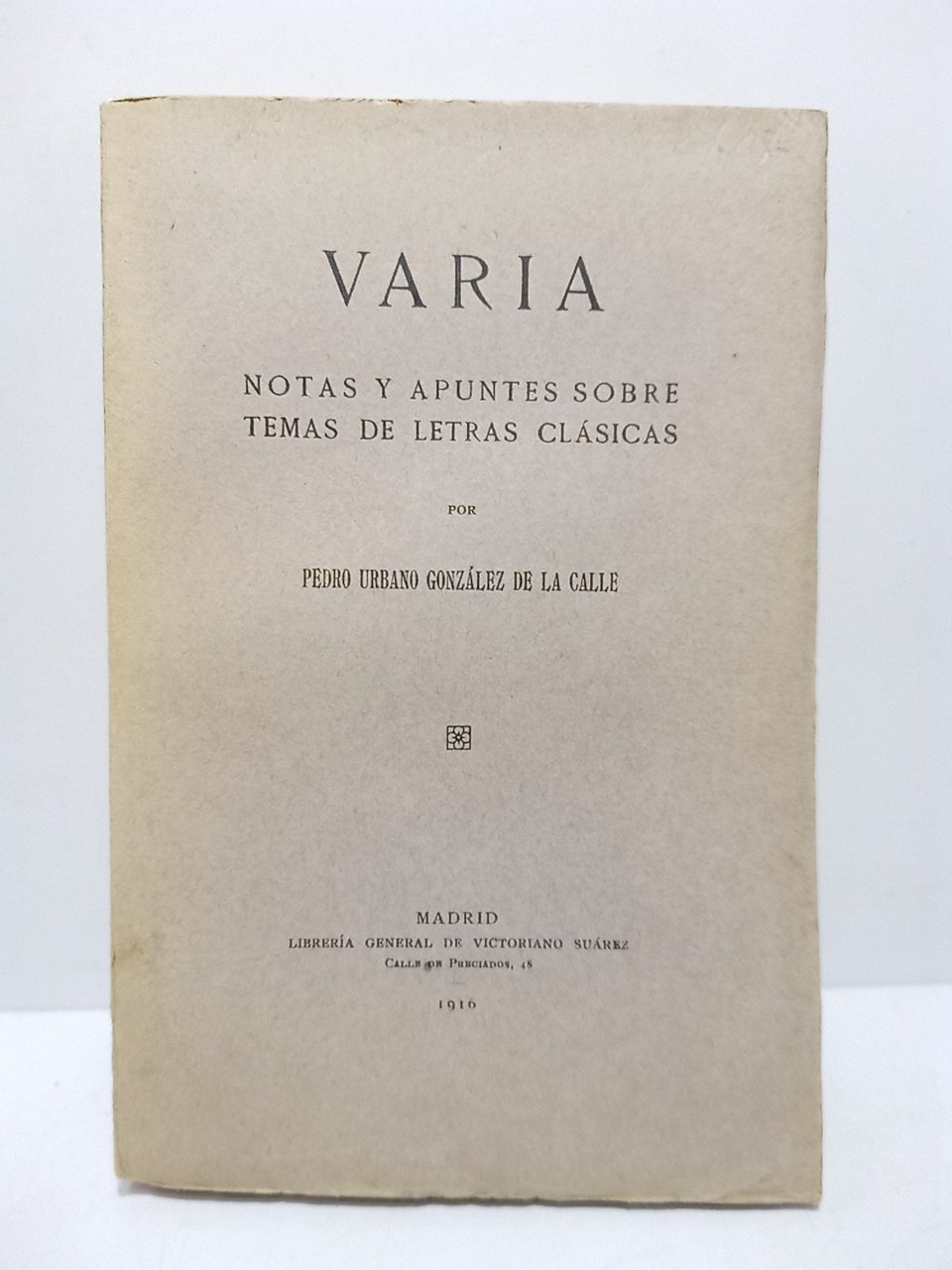 Varia: Notas y apuntes sobre temas de letras clásicas