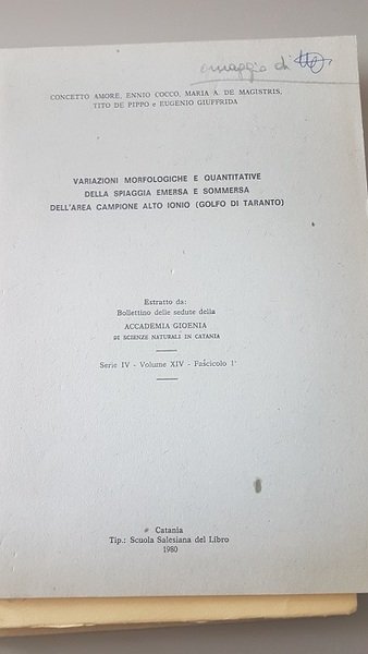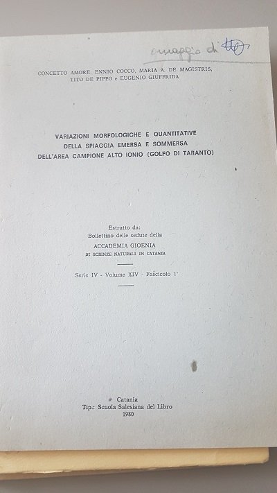 VARIAZIONI MORFOLOGICHE E QUANTITATIVE DELLA SPIAGGIA EMERSA E SOMMERSA DELL'AREA CAMPIONE ALTO IONIO (GOLFO DI TARANTO) ESTRATTO DA BOLLETTINO DELLE SEDUTE DELL'ACCADEMIA GIOENIA