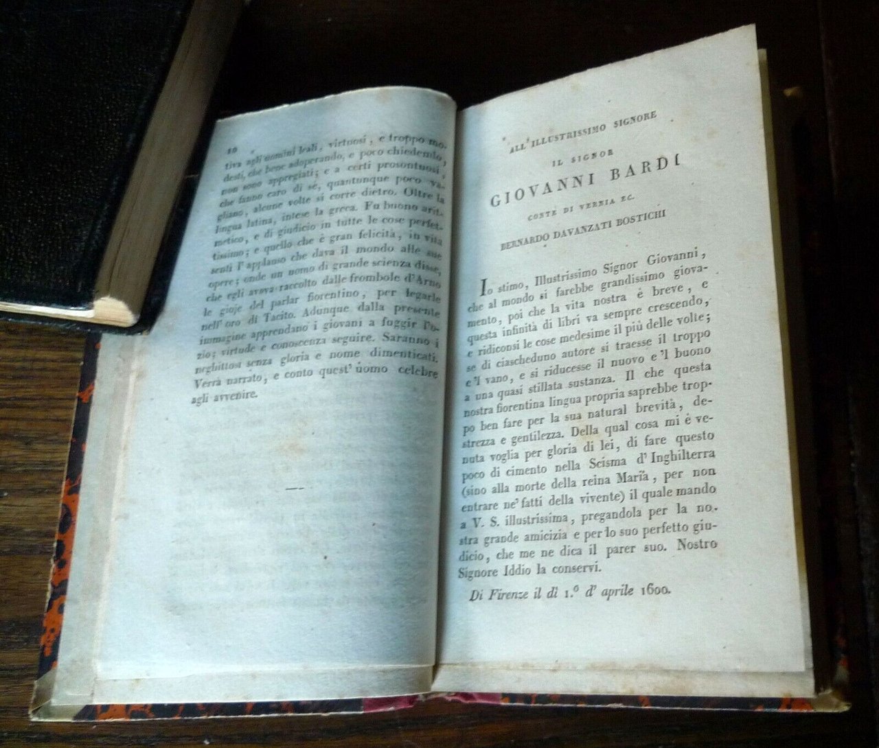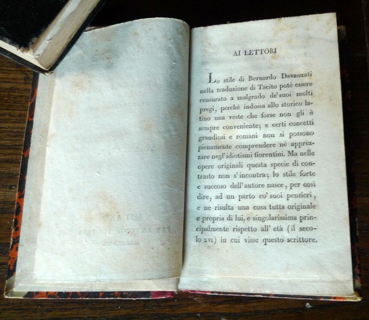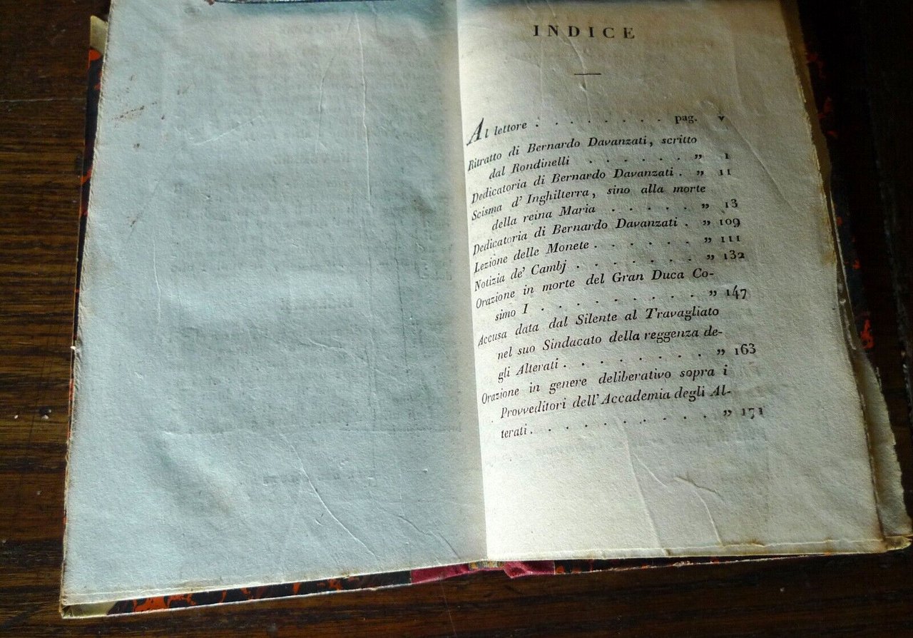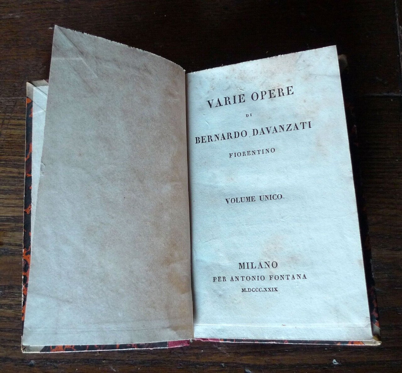 VARIE OPERE DI BERNARDO DAVANZATIFIORENTINO.VOLUME UNICO.Milano, per Antonio Fontana, M.DCCC.XXIX (1829),copertina rigida, rilegatura coeva in mezza pelle,14x8,5 cm., pp.239,peso: g.150