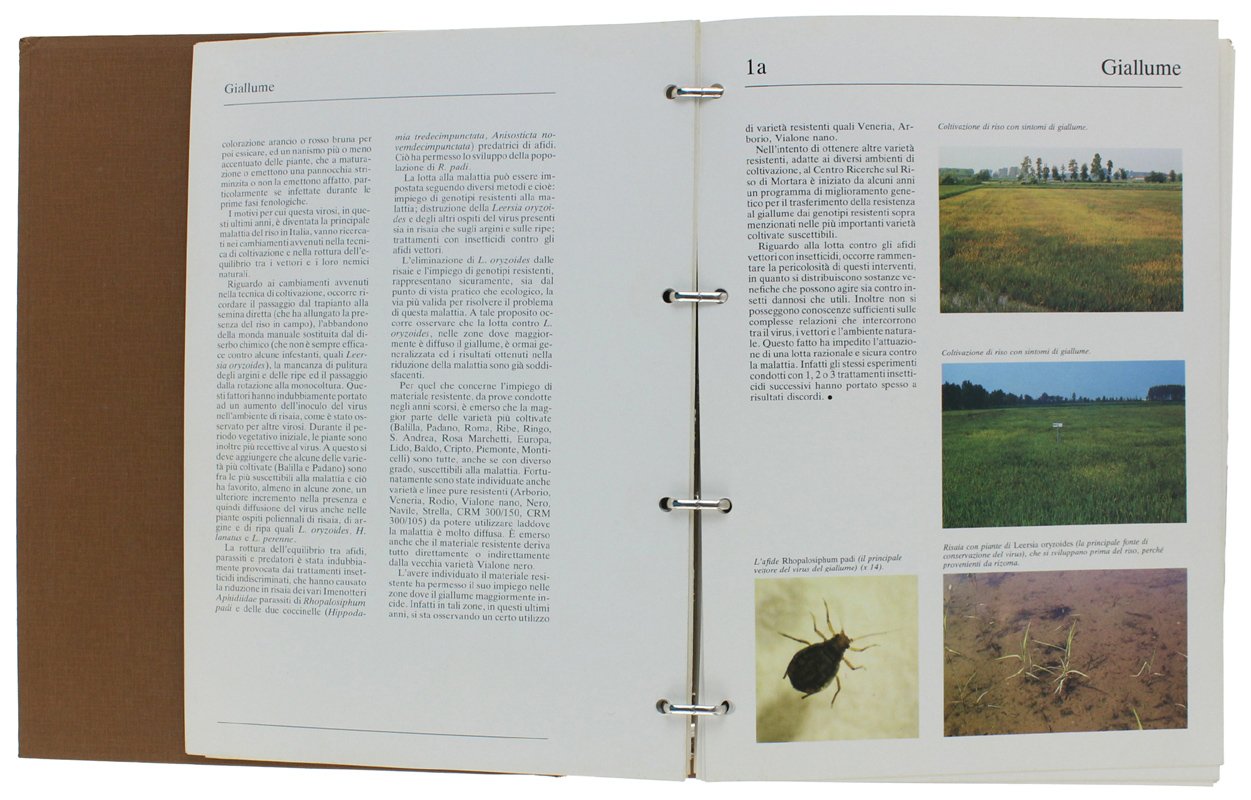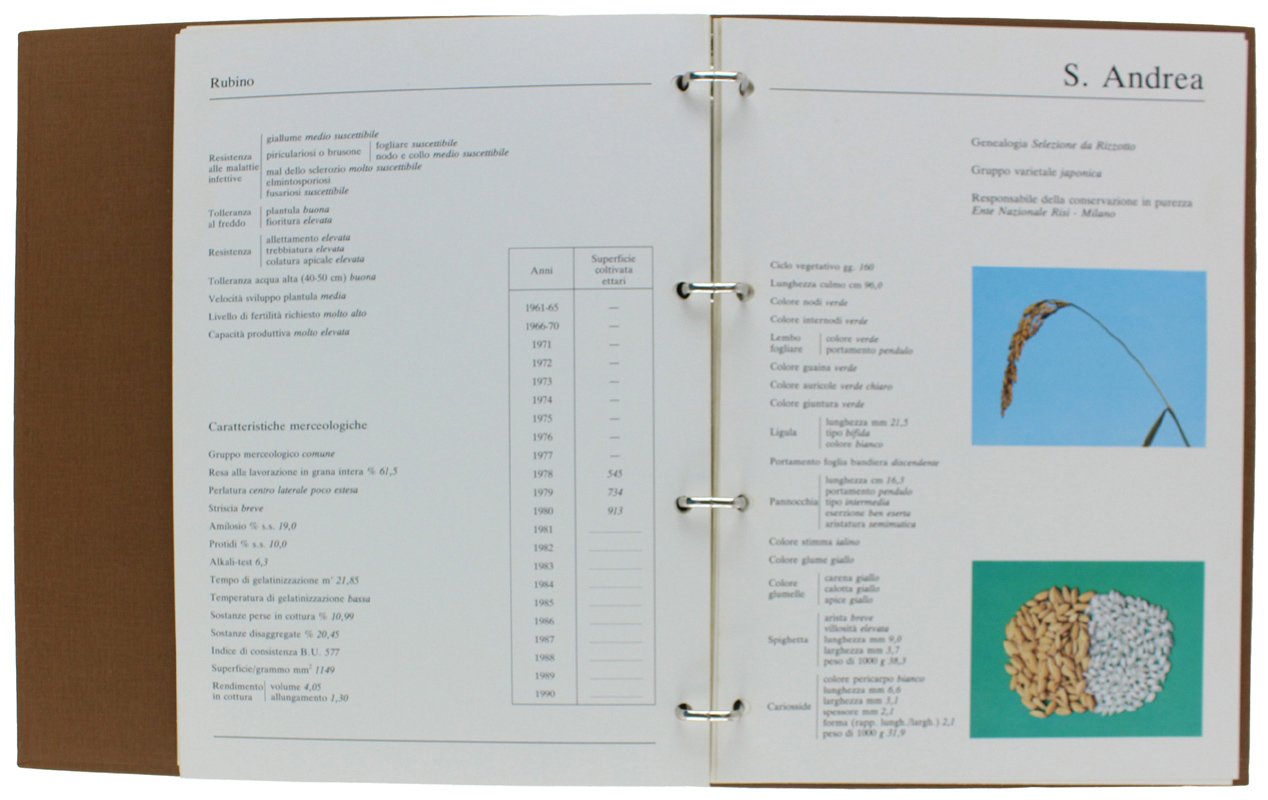 (Codice AG/1055) Tre volumi in 4° (31x23,5 cm) - legature tutta tela, titoli oro, nel cofanetto originale. Il 1° volume contiene 37 schede mobili illustrate a colori (caratteri dei vari risi); il 2° corposo volume contiene 50 ampi estratti relativi a problemi del riso e studi di intervento (1984-88 circa). Il 3° volume ricorda il 50° dell'Ente (1931-1981): 16 pagine su carta forte, varie foto. Ottimo stato. ~~~ SPEDIZIONE IN ITALIA SEMPRE TRACCIATA