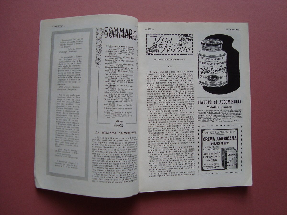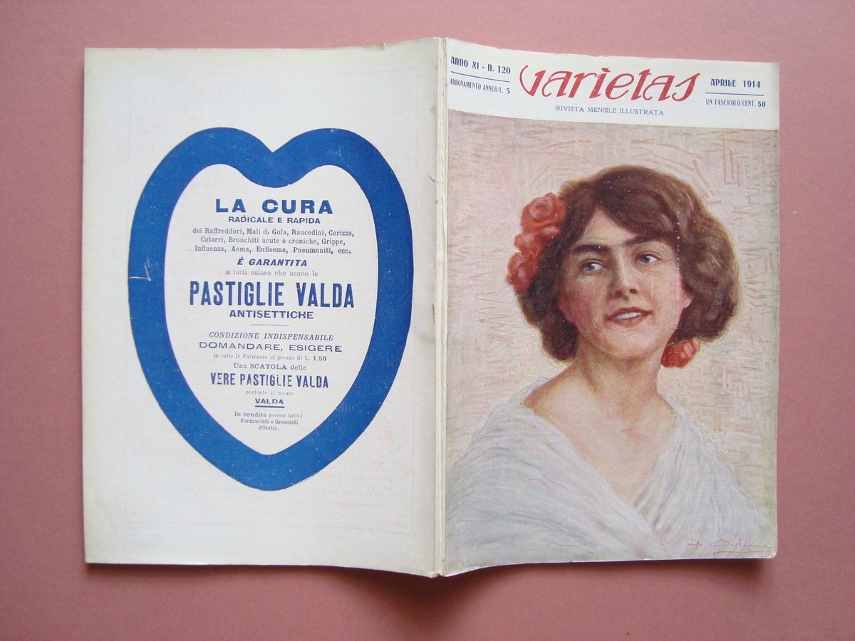 Rivista, Varietas" Casa e Famiglia Rivista Mensile Illustrata Anno XI N. 120 Aprile 1914 "La Guarigione" Tip. Marchiondi, Milano, 1914, cm. 23,5x16,5; pag. da 261 a pag 348, numerose ill. in b/n nel. t. e fuori. t., inserzioni pubblicitarie d'epoca in b/n n.t e f.t.; brossura ed. Copertina ill. a colori. Numero completo. Condizioni di conservazione Esemplare in buone condizioni con tracce d'uso e del tempo; alcune pagine ingiallite, macchiette ai tagli; interni complessivamente buoni. "La guarigione" novella sarda di Pietro Casu pp 9 di testo con 6 ill. fot. bianco e nero (Suaralto- Petrapinta) Numero completo. RVS001N00656 blu "