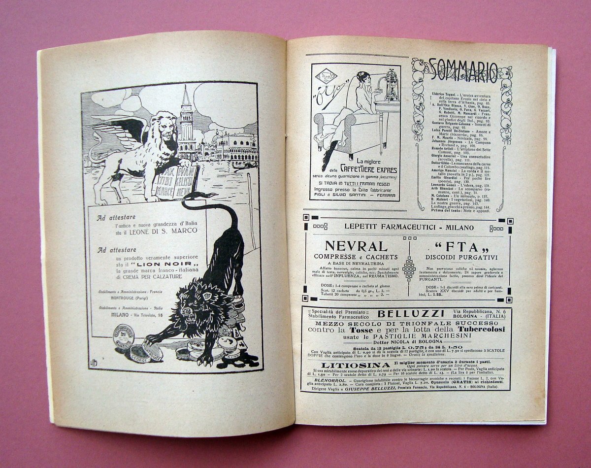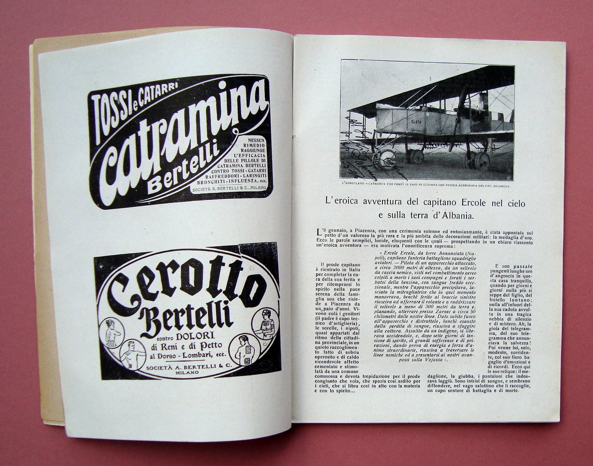 Rivista, Varietas" Rivista Mensile Casa e Famiglia Anno XIV N. 154 1 Febbraio 1917 "L'eroica avventura del capitano Ercole nel cielo e sulla terra d'Albania" medaglia al V.M Napoli Soc. Ed. Sonzogno; Milano, 1917, cm. 24x17; pag. da 217 a pag 290, con numerose ill. in b/n nel. t. e fuori. t., inserzioni pubblicitarie d'epoca in b/n in apertura e chiusura di testo; brossura ed; copertina illustrata a colori. Condizioni di conservazione Esemplare in buone condizioni con tracce d'uso e del tempo; piccole mancanze alle cuffie del dorso; interni con leggere bruniture ai margini. " L'eroica avventura del capitano Ercole nel cielo e sulla terra d' Albania " Tegani 8 pagine di testo con 9 ill.fot. Numero completo e compatto. RVS001N00687 blu "