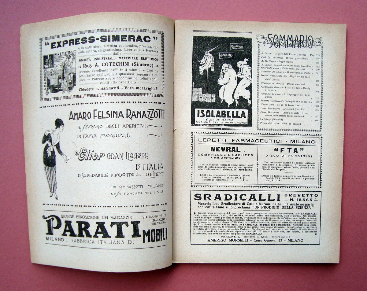 Rivista, Varietas" Rivista Mensile Illustrataa Anno XVI N. 182 1 Giugno 1919 "Il Santuario di Paola" Soc. Ed. Sonzogno; Milano, 1919, cm. 24x17; pag. da 329 a pag 400, con numerose ill. in b/n nel. t. e fuori. t., inserzioni pubblicitarie d'epoca in b/n in apertura e chiusura di testo; brossura ed; copertina illustrata a colori. Condizioni di conservazione Esemplare in buone condizioni con tracce d'uso e del tempo; br. ant. con qualche piccola macchietta; dorso con leggere abrasioni; interni con bruniture. "Il Santuario di Paola" S.De Chiara 4 pagine di testo con 5 ill.fot. Numero completo e compatto. RVS001N00691 blu "