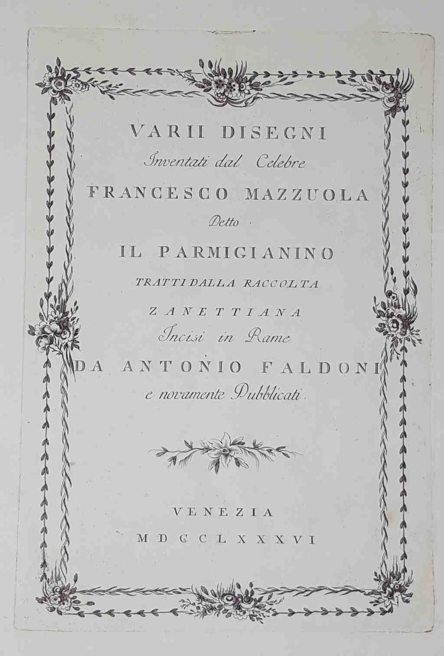 Varii disegni inventati dal Celebre Francesco Mazzuola detto il PARMIGIANINO, tratti dalla raccolta zanettiana incisi in rame da Antonio Faldoni e nuovamente Pubblicati.