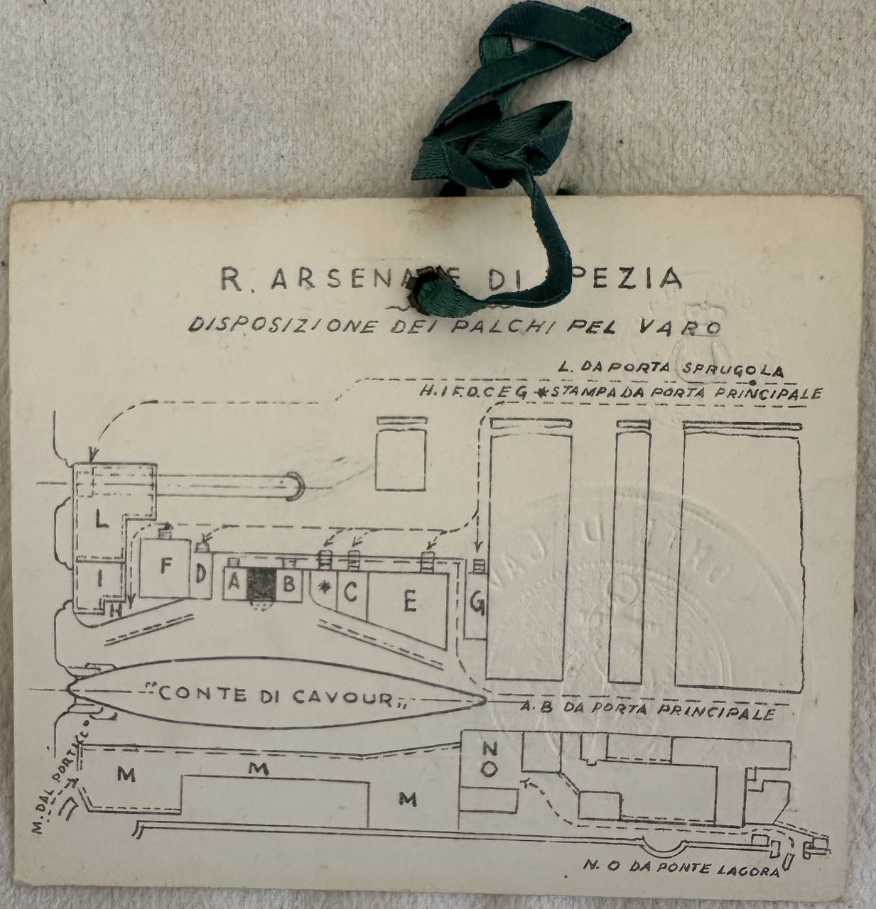 Rarissimo documento, l'invito al varo della nave "Conte di Cavour" del 10 agosto 1911 al Senatore Salvatore Fratellini (Spoleto 1919- Spoleto 1929). L'invito era personale e numerato. Al recto timbro a secco della Nave. Al verso mappa della nave. Dim. cm 10x12.Very scarce document, the invitation tot he launch of ship "Conte di Cavour" of the 10th of august 1911 to the Senatore Salvatore Fratellini (Spoleto 1919- Spoleto 1929). The invitation was numbered and personal. In the recto embossed stamp of the ship. In the verso map of the ship. Dim. cm 10x12.