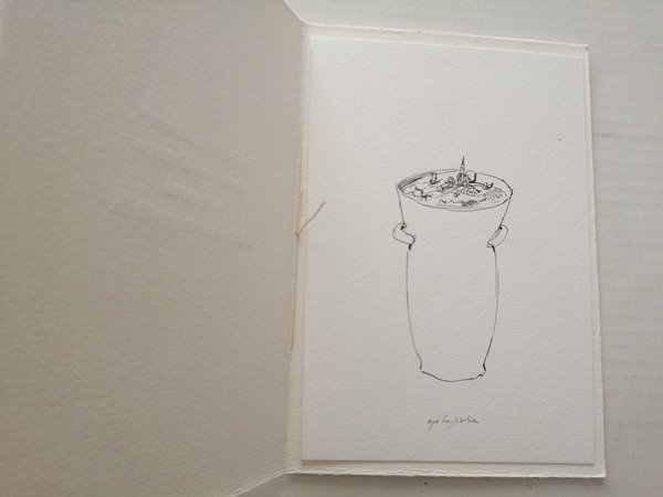 formato 19,5X18. Plaquette. Tiratura in30 esemplari. EDIZIONE N.7899 . Con una opera originale firmata di Ugo La Pietra.In occasione della Mostra del Pulcinoelefante alla Galleria Fatto ad arte di Monza. Perfetto stato