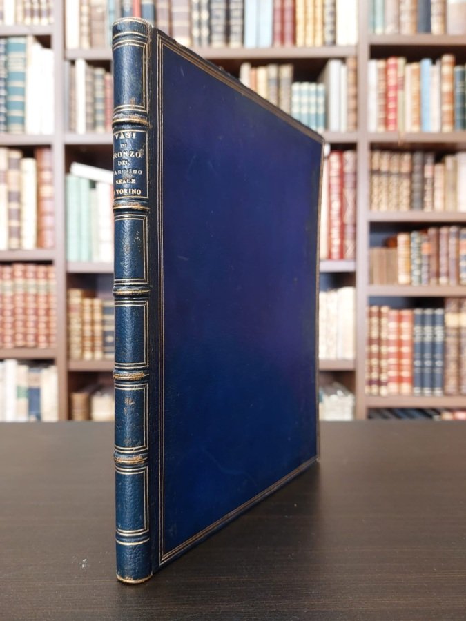 <span style="font-style: normal;">In-8° (cm. 23), </span>pp. [8] e 32 tavole fotografiche protette da velina. E<span style="font-style: normal;">legante legatura coeva in pieno marocchino </span><i>bleu foncé</i><span style="font-style: normal;"> con cornice di triplice filetto in oro ai piatti, dorso a 5 nervi con titolo e filetti in oro (lievissime usure), filetto puntinato ai labbri, tagli dorati, triplice filetto in oro ai rimbocchi; </span><i>Ex libris</i><span style="font-style: normal;"> del principe Tommaso di Savoia al contropiatto, invio autografo dell'autore alla duchessa di Genova. Edizione originale, esemplare n. 6 con timbro editoriale «</span>Ars lucis domina lux artis» al <i>verso</i> del frontespizio. Bell'esemplare. [L]