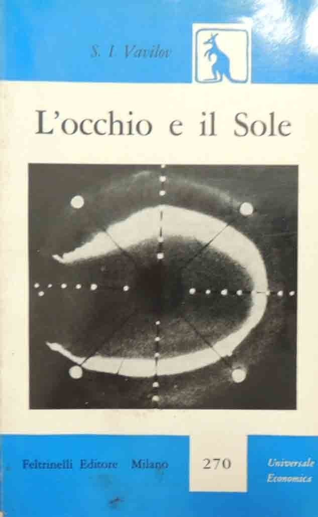 Sergej Ivanovic Vavilov, L’occhio e il sole, Feltrinelli Editore, Milano 1959, prima ed., pp. 175, ill. b.n., 6 c. di tavv. f.t. ill. b.n., cm 17, br. ed. Collana Universale Economica, n. 270. Serie Scientifica, n. XLV. Titolo originale: Glaz i solnce. Traduzione di Mario Cavedon. Leggere tracce d’uso alla brossura, fioriture, lieve brunitura della carta, per il resto buona copia.
