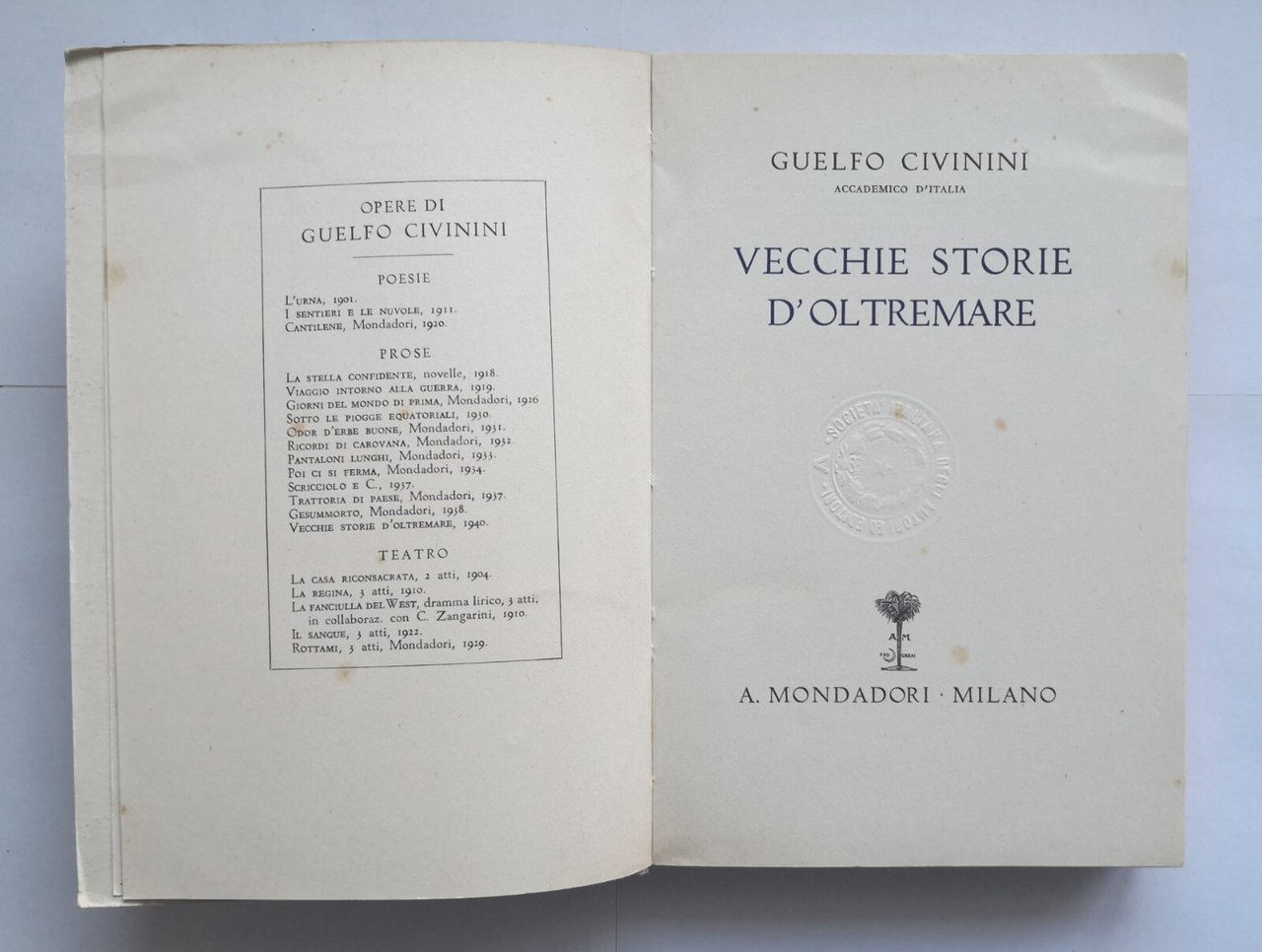 VECCHIE STORIE D'OLTREMARE di Guelfo Civinini 1940 Mondadori romanzo biografia