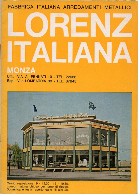 Vecchio catalogo della Lorenz Italiana - Fabbrica Italiana Arredamenti Metallici, di Monza, relativo ad arredi per l'esterno, in metallo e in legno