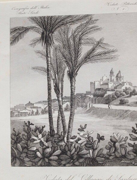 Bella acquaforte del 1842-45, tratta dall'opera "Corografia fisica storica statistica d'Italia" dello Zuccagni Orlandini, montata su elegante passepartout. La veduta animata rappresenta il paese di Sanluri in Sardegna. Testo in lingua italiana. In buone condizioni, fioriture. TECNICA: Acquaforte DIMENSIONI PASSEPARTOUT: cm 45x34,5 DIMENSIONI INCISIONE: cm 29x19,5 EPOCA: 1842/45. Beautiful etching of 1842-45 taken from the work "Corografia fisica storica statistica d'Italia" by Zuccagni Orlandini. The print is mounted in an elegant passepartout. The animated view represents the town of Sanluri, Sardinia. Text in italian language. In good conditions, foxings. TECHNIQUE: Etching LEAF SIZE: 45x34,5 PRINT'S SIZE: cm 29x19,5 PERIOD: 1842-45