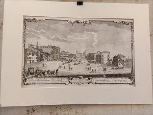 Bellissima veduta di Vicenza che fa parte della famosa serie di Cristoforo Dall'Acqua, nota per l'interpretazione personale e onirica delle Piazze e dei Giardini della città. Il foglio è in buonissimo stato, presenta solo una leggera fioritura della carta. Buon margine superiore ed inferiore, rifilato invece ali lati anche se presente tutta la lastra. In basso a destra la dicitura "Cristoforo dall'Acqua Vicentino disegnò ed incise. Misure fogliomm 430x626
